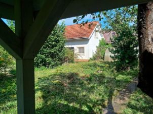 Участок ровный, сухой, 20х40 м., в центре поселка, растут хвойные деревья, фруктовый сад и кустарники. Дом капитальный, каменный с отоплением, подойдёт под баню, хоз. блок или гостевой дом. Круглогодичный асфальтовый подъезд, остановка общественного транспорта, соседи живут постоянно.