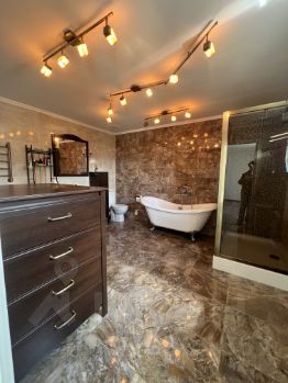 Гараж: Оборудован секционными металлическими воротами, что обеспечивает безопасность и удобство. Коммуникации: Электричество 15 кВт (дневной тариф 6.99 руб/кВтч, ночной 2.86 руб/кВтч). Центральные системы воды, канализации и газа. Почтовый адрес и возможность прописки.
