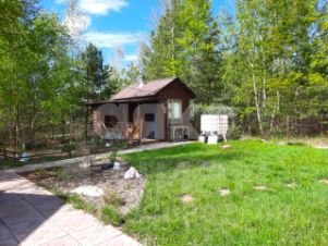 На участке отличная банька- 2х4 м. При входе топка и душевая кабинка (не подключена к воде), второе помещение парилка. К бане пристроен уличный туалет и небольшая веранда.