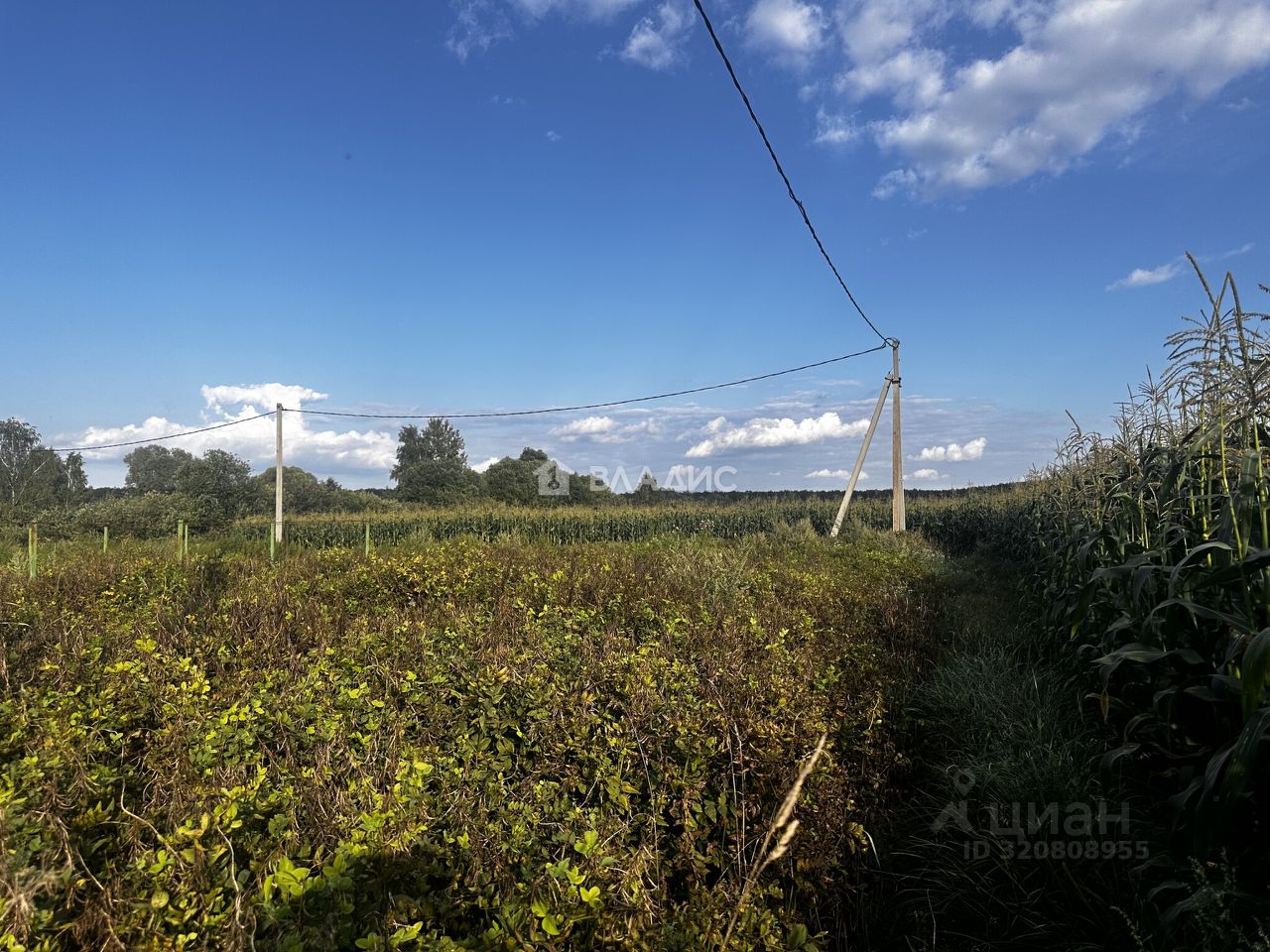 Напротив участка расположено кукурузное поле,