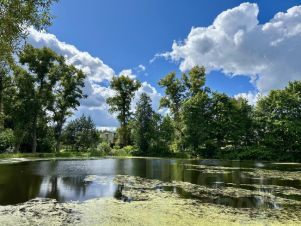 Место тихое, не проездное, рядом пруд виден из окна дома. Дом и участок оформлены, на каждое имеется свое свидетельство, присвоен адрес, Подмосковная прописка.