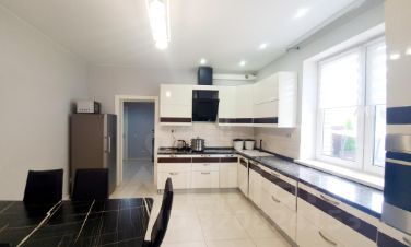 На первом этаже расположены - оборудованная просторная кухня-столовая с тёплым полом, гостиная, гостевая спальня, гардеробная и санузел с душевой (теплый пол),