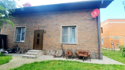 Дом теплый, обладает хорошей звуко- и шумоизоляцией, построен из газосиликатных блоков, утеплитель пеноплекс, облицован кирпичом, толщина стен 50 см, кровля из металлочерепицы, фундамент ленточно-свайный.