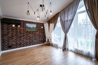 1 этаж: холл, гостиная с камином и выходом на крытую террасу, столовая-кухня, сауна, с/у (душ), котельная.
