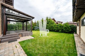 На участке выполнен ЛАНДШАФТНЫЙ ДИЗАЙН, выстелен газон, растут плодовые деревья, выполнен автополив по всему участку, ливневая система вокруг дома. Есть гараж с автоматическими воротами, паковка под навесом на 2 м/м, еще паковка на 2 м/м.