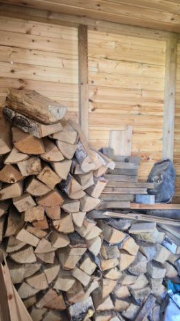 Для хранения дров предусмотрена дровница, а также есть хозблок и отдельный санузел на улице.