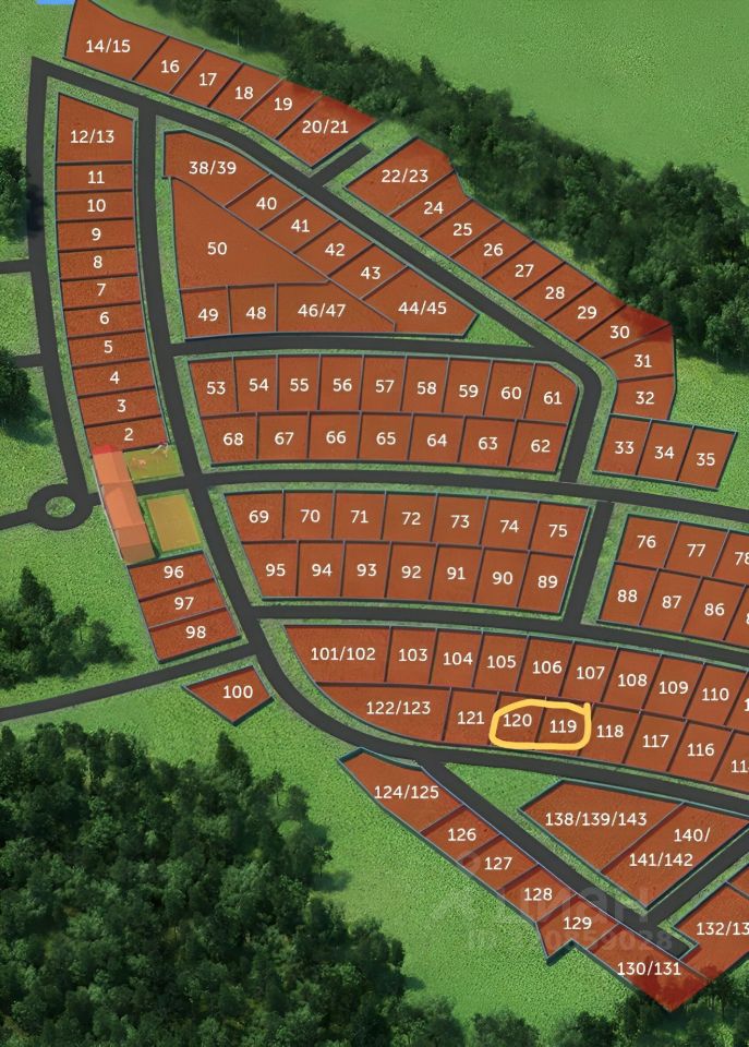Возможно приобрести один или несколько участков. ( 119, 120 ).