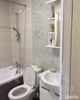 В сан узле установлена ванная и унитаз, водонагреватель, стиральная машина. Ванная в кафеле.