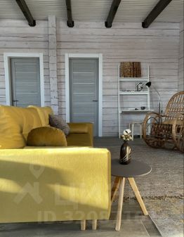 Дом построен из профилированного бруса толщиной 19 см и утеплен фасадными панелями с утеплителем. Фундамент - железобетонные блоки. Окна - стеклопакеты, железная входная дверь.