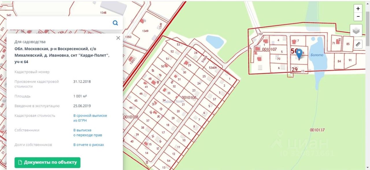 Продаётся участок 64 ровный, сухой- стоит на возвышенности от болота, в окружении соседей, которые живут на ПМЖ, правильной прямоугольной формы 10 соток с правом строительства жилого дома с правом регистрации проживания в нем. Сейчас на участке стоит дом (недостроенный), который можно снести или использовать как подсобное помещение- не зарегистрирован, электричество и магистральный газ по границе участка. Круглогодичный подъезд. Соседи живут на ПМЖ. Удобное транспортное сообщение: недалеко ж/д и автостанция Бронницы Казанского направления. Ближайшее метро Ипподром 20 мин. На машине до МКАД 35 км. Развитая инфраструктура: сетевые супермаркеты, школа, детский сад, больница- всё в ближайшей доступности, рядом лес. Удобный заезд с А107, А113 ЦКАД. Проведено межевание участка. Один собственник, более 15 лет. Документы готовы к продаже. Быстрый выход на сделку.