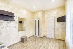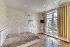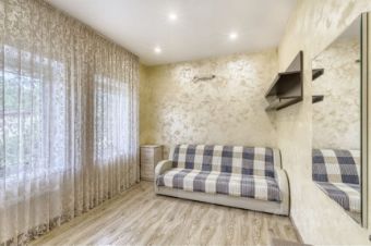 1 этаж: Санузел (3 кв.м.), объединенная кухня-гостиная (36 кв.м.), летняя веранда (20 кв.м.). Установлены водяные теплые полы и кондиционер.