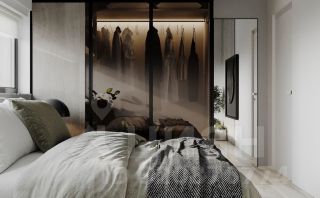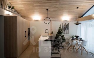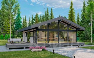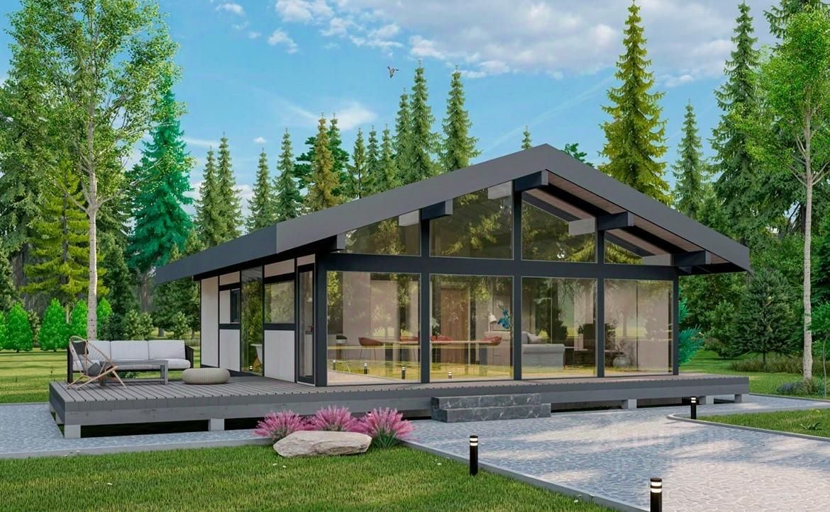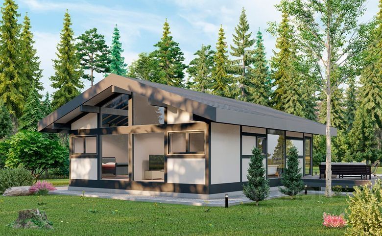 Внутреннее пространство дома составляет 35 кв. м., в котором предусмотрено 1 спальня. Высота потолков составляет 4,2 метра, окна — панорамные, увеличенные и второй свет.