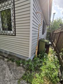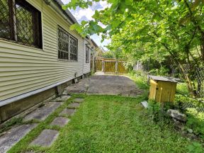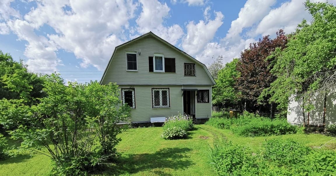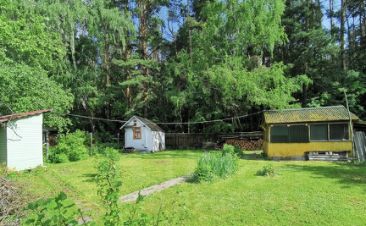 Постройки на участке - парковка на 2 машины, летний душ, летний туалет с септиком, маленький деревянный дом на фундаменте возле леса (без отопления), беседка с мангальной зоной, колодец. На участке растут яблони и смородина.