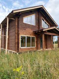 Дом построен из качественного бруса, крыша - металлочерепица, фундамент свайный. В доме 2 этажа, планировка - см. фото. Водоснабжение - колодец. Электричество заведено в дом.