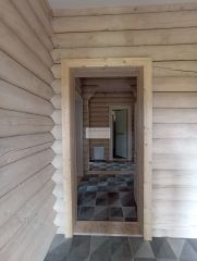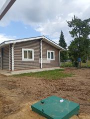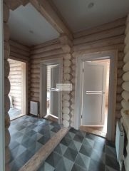 На участке есть баня, построенная также из бревна, в одном стиле с домом. Все коммуникации в баню уже заведены, есть комната отдыха, душевая и парная. Вам остаётся только установить печь.