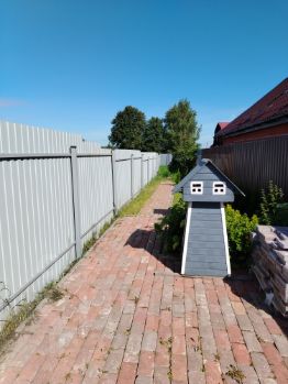 Земельный участок в Москве (на территории новой Москвы) 12 соток. Рядом с деревней расположены два леса, поле, в радиусе 50 метров от участка расположен пруд, который наполняется с родников. В деревне есть вывоз мусора из контейнеров, которые находятся на выезде из деревни. Есть шлагбаум, открывается с использованием пульта или телефона, для ограничения проезда посторонних на территорию. Участок выровнен, часть земли отдельно завозилась после покупки. Подведено электричество, щиток возле участка, в котором находится розетка. Газ не подведён, заявление на газификацию не подавалось, магистраль в деревне для подключения имеется. На участке имеется некапитальное строение (бытовка), колодец, по границе участка есть ливневый коллектор (подходит для технической воды). Ворота открываются вручную, система дистанционного открытия не установлена.