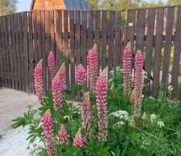 На участке растут две ели и 6-7 берез/осинок. Цветы - тюльпаны, флоксы, лилейник. В