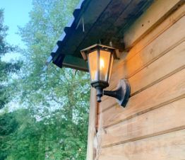 1) на участке есть электричество, в доме проводку и комплектующие устанавливал профессионал - по ТБ и аккуратно,кабель-каналы под цвет дерева, много розеток,потолочные светильники, по бокам от входной двери - два светильника в виде уличных фонарей плюс один на боковой стене дома.