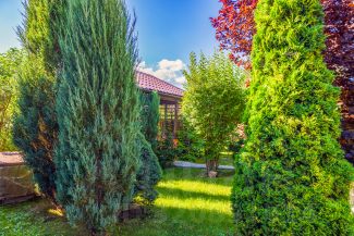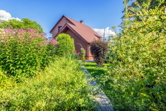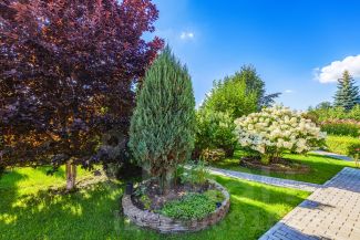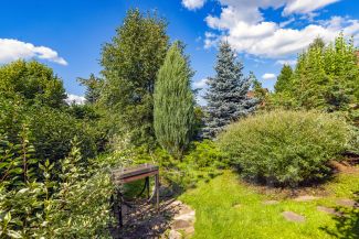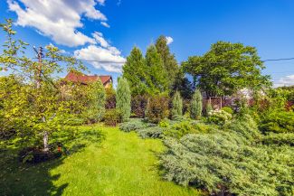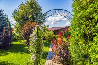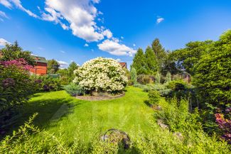 На земельном участке выполнен ландшафтный дизайн, высаженные цветы, хвойные деревья и кустарники, плодовые деревья.