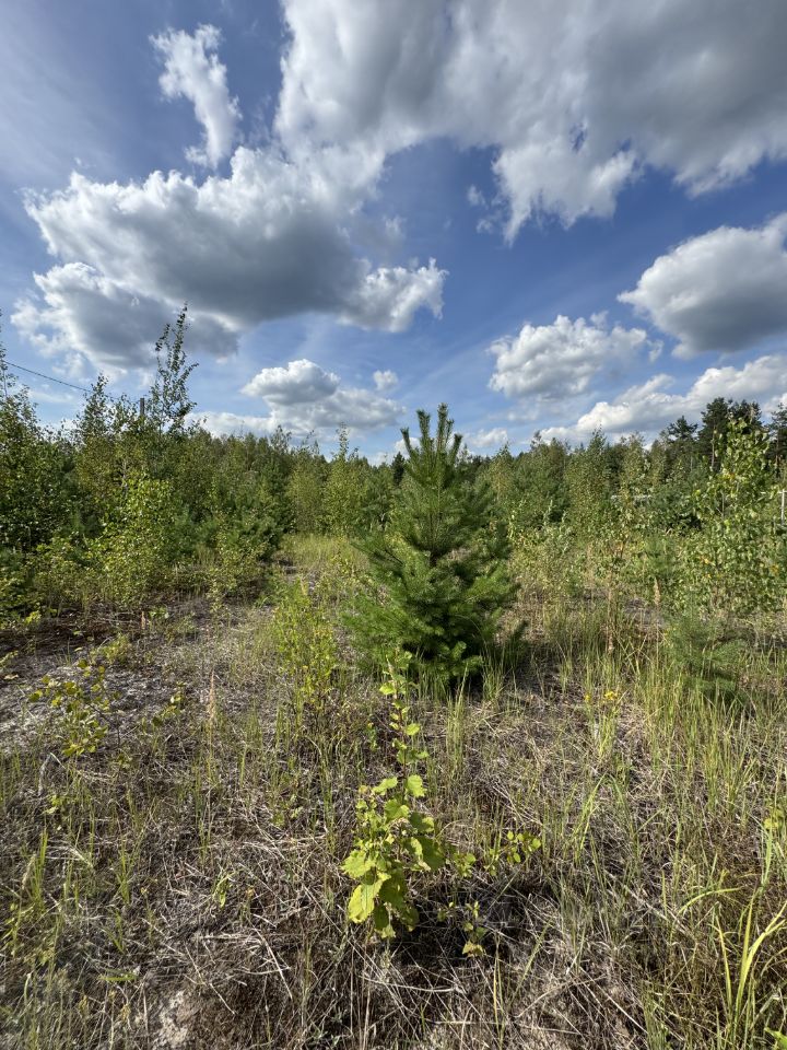 Подъезд к участку выложен щебенкой, на улице стоят столбы электричества, есть каркас забора. Рядом лес. Тихое уютное место. На участке красивые сосны и березы, можно выборочно оставить. Участок ровный. На последнем фото видно форму участка.