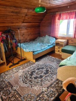 Встречает тебя двухэтажный красавец из теплого бруса, твердо стоящий на ленточном фундаменте. Войди и ощутишь атмосферу настоящего дома: две уютные спальни на первом этаже, прихожая, коридор, а под самой крышей, на втором еще одна светлая спальня, где так хорошо мечтается.