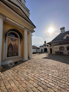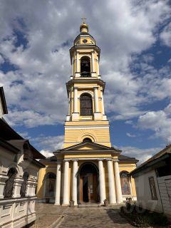 Напротив выезда из поселка есть красивейший Михайловский храм.