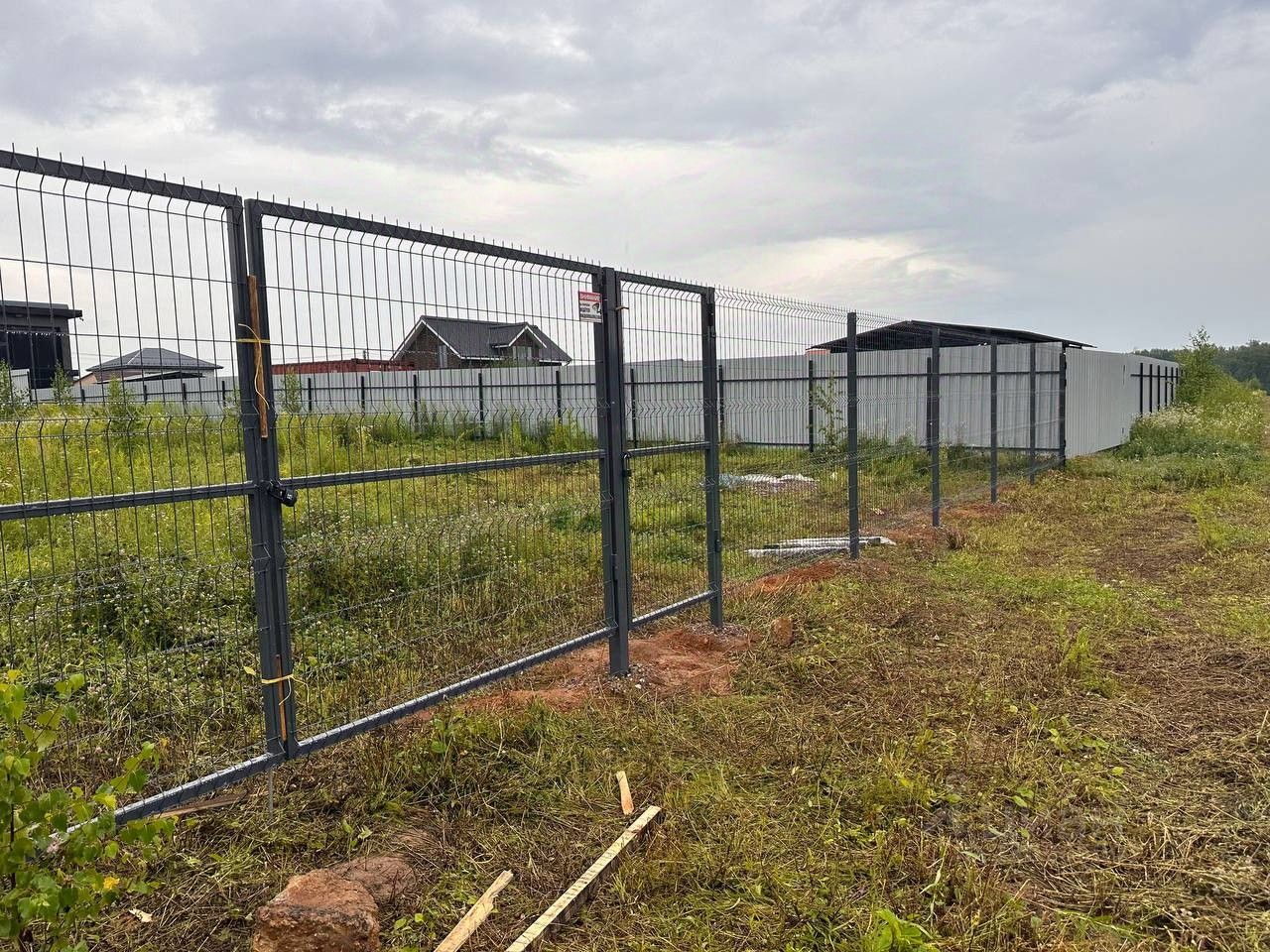 Участки ровные без забора между собой, весной и осенью воды нет, тк. есть небольшой уклон в сторону леса. Поставлен 3Д забор со стороны леса, со стороны улицы съемный забор с сеткой рабицей.