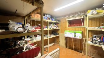 В цокольном этаже размещен туалет, комната для хранения продуктов и консервации, мастерская и сауна с душевой и комнатой отдыха. Дом построен из бруса 150х150 и отделан облицовочным кирпичём.