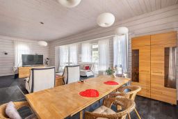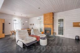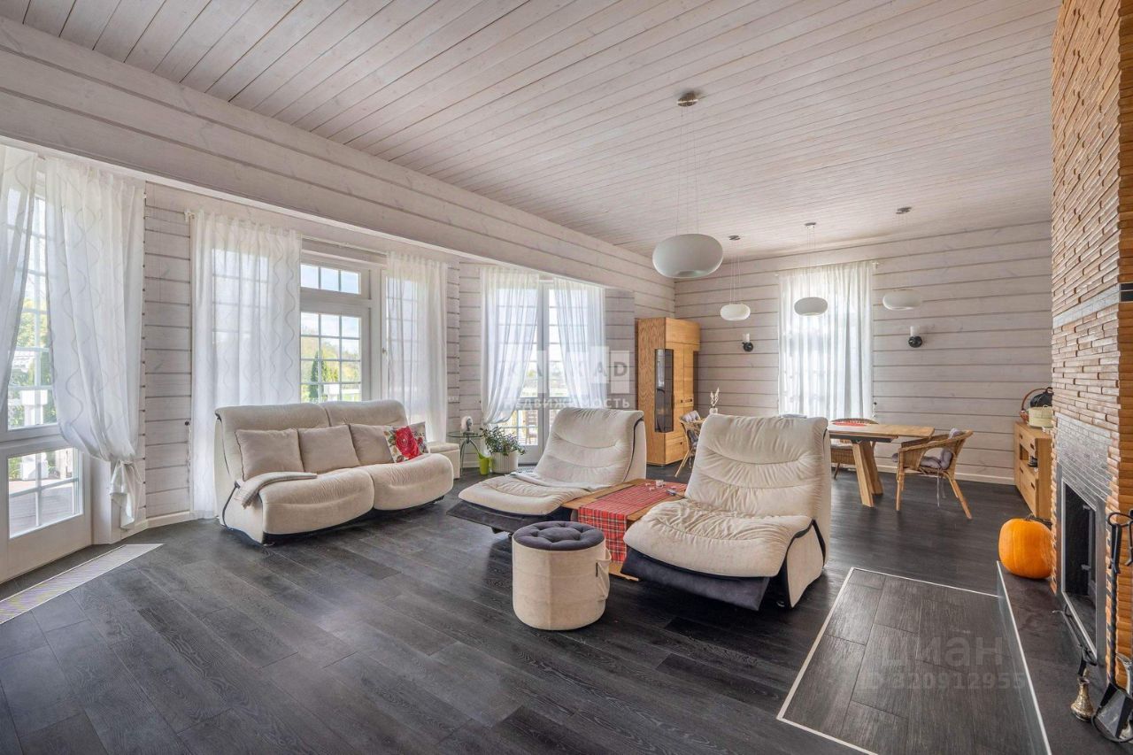 Просторная гостиная с камином и обеденной зоной - идеальное место для семейных вечеров и приема гостей.