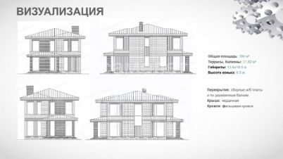Планировка: h потолков : 3,2 м 5,5 м ; совмещенная кухня гостиная 45 м2 с высоким потолком с выходом на террасу, крытая терраса - 13,9 м2 ; 5 спален , Кладовая , Два санузла; Котельная.