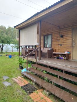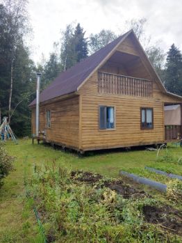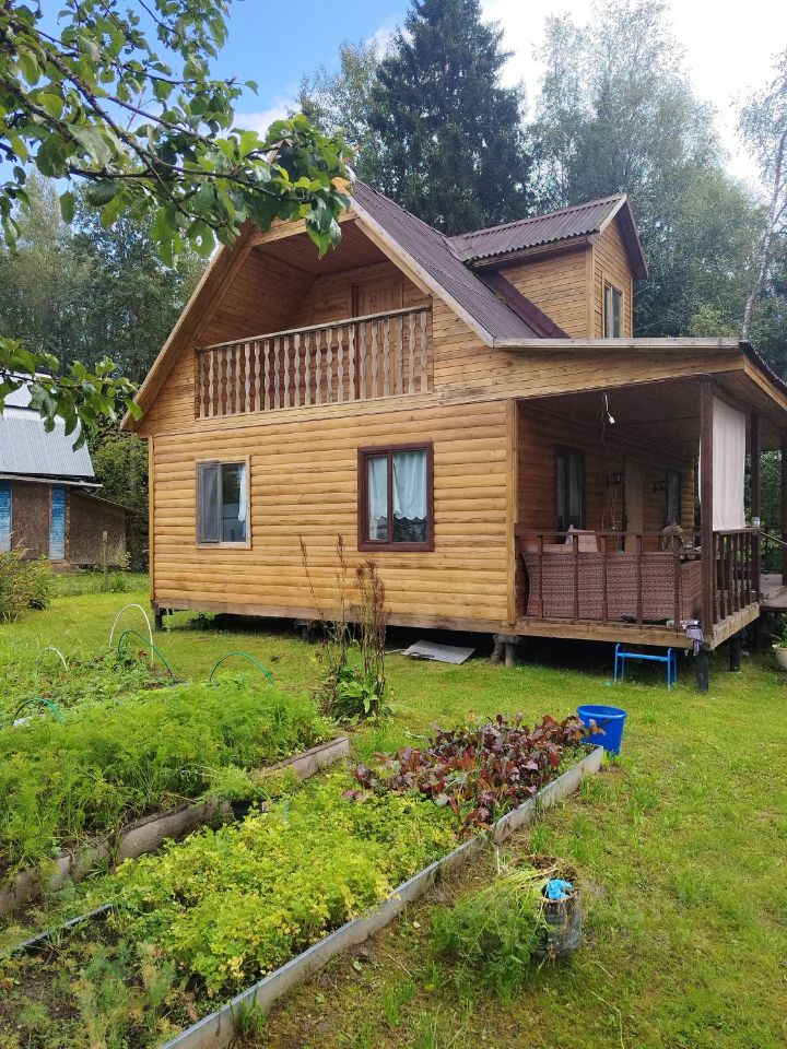На участке дом 8*9 с террасой, 88 кв.м из строганного бруса. 1 этаж- холл, совмещенная гостиная и кухня, 2 спальни. 2 этаж- спальня, балкон, зона отдыха.