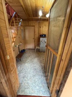 К дому есть пристройка на входе - закрытое крыльцо (предбанник) со входом в дом и в комнату, где установлен душ, насос (из колодца качает воду), можно стиралку подключить, трубы проведены под нее. так же проведены трубы в душевую и на кухню к раковину (со сливом на улицу).