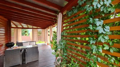 Продается деревянный дом (70 м2) из естественного бруса с террасой (35 м2) и местом для автомобилей для круглогодичного проживания.