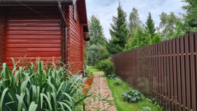 9.2 соток, широкий, ровный с ухоженным газоном и дренажной системой по периметру участка. Огорожен забором из евроштакетника с откатными воротами и стоянкой из щебня для 3-4 автомобилей. На участке хвойные, лесные, плодовые деревья и кустарники, цветники. Расположен на второй линии от леса.