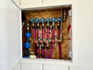В доме есть две зеркально расположенные спальни с мебелью — в каждой установлены новые кровати, шкафы, тумбы.