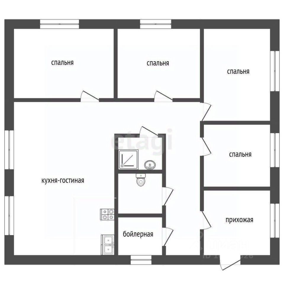 Планировка: прихожая, четыре жилые комнаты, кухня гостиная, санузел раздельный.