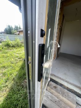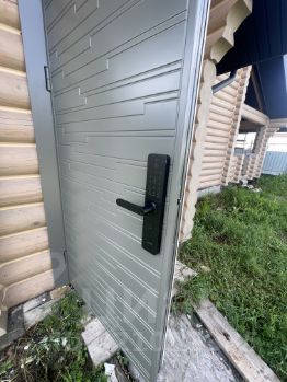 Установлена дверь с терморазрывом, электрообогревом и умным замком (Бастион-С).