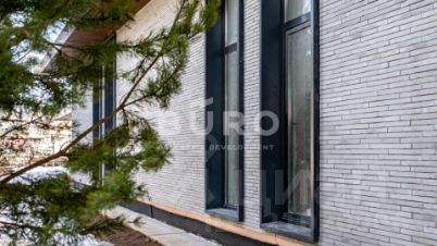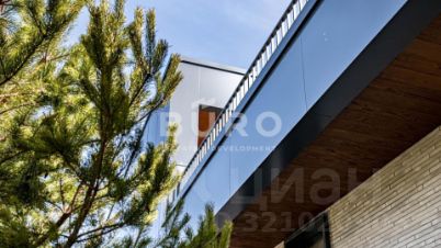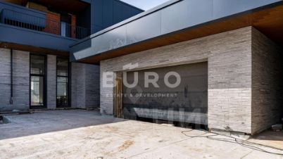 Дом возведён в современном стиле и идеально подходит для постоянного проживания на природе. Фасад облицован натуральным камнем и деревом. Благодаря панорамным окнам в каждой комнате и высоким потолкам внутреннее пространство наполнено естественным светом.