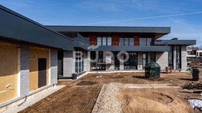 Новый дом с 5-ю спальнями, общей площадью 838 м.², расположен на видовом участке 20,7 соток, в 1 минуте ходьбы от большого парка с озером.