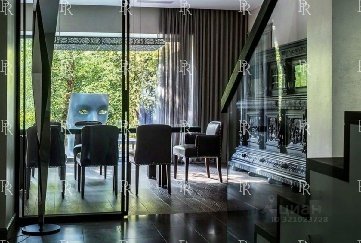 Планировка: Кухня-столовая, гостиная, открытая терраса, 4 спальни, два кабинета, 6 с/у, 4 гардеробных комнаты, спортзал, сауна, подземный паркинг на 4 автомашины.