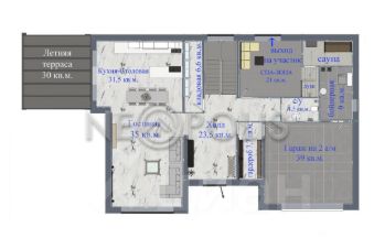 1 этаж: холл, кухня-столовая с выходом летнюю террасу (30 кв.м.), гостиная с дровяным камином, гардеробная, SPA зона: комната отдыха с выходом на участок, сауна, санузел с душевой; кладовая, бойлерная, гараж на 2 авто (39 кв.м.).