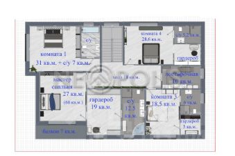 2 этаж: холл, мастер-спальня с гардеробной, ванной комнатой и балконом, две спальни с гардеробными и ванными комнатами, спальня с ванной комнатой, постирочная.