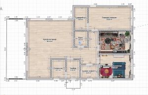 Планировка: прихожая, котельная, просторная кухня-гостиная с выходом на террасу, 3 спальни, одна из которых со своей гардеробной, с/у, сауна.