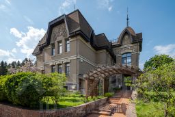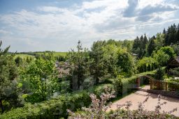 Продаётся двухэтажный загородный дом площадью 949.1 м² на участке 50 соток, окружённый лесом и продуманным ландшафтом, с панорамным видом на гольф-клуб Дмитров и озеро.