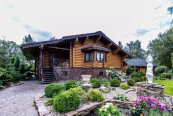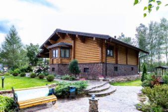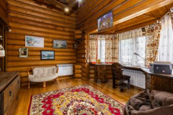 Дом построен из прочного бревна архангельской зимней сосны в стиле альпийского шале. На входе-фамильный герб, хранящий историю рода.