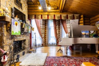 Изысканные детали: огромный камин высотой 5,5 метров и шириной 2 метра из трех тысяч кирпичей с топкой Laudel, концертный рояль August Fster, коллекция картин известных художников, ретро-проводка Beroni.