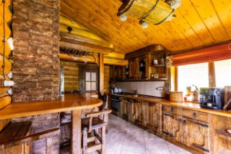 Авторский интерьер: эксклюзивная мебель ручной работы, облицовка, массивные двери и окна под старину, люстры и светильники из массива дерева, созданные в частной столярной мастерской.