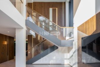 Холл, кабинет, мастер спальня со своим с\у и гардеробной, спальня с с\у и гардеробной, спальня с с\у, квартира для персонала с отдельным входом из гаража, эксплуатируемая кровля над бассейном.