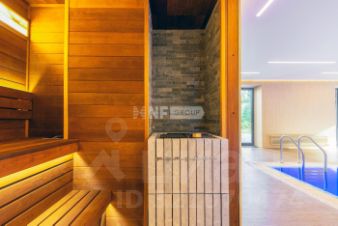 В доме имеется спа-зона, включающая в себя сауну и бассейн 7*4 с противотоком и подсветкой. Бассейн оснащен инновационной системой очистки NECON. Кристально чистая вода без хлора и химических запахов обеспечивает максимальную безопасность для всей семьи, а технология ионов меди и цинка сохраняет её прозрачность годами. Благодаря пролонгирующему эффекту и защите оборудования, бассейн требует минимального обслуживания.