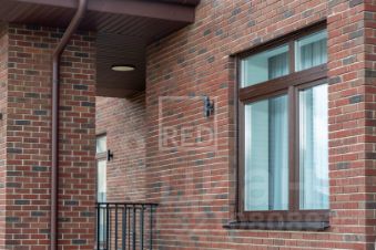 Монолитный каркас и боковая кладка из пеноблока обеспечивают высокую энергоэффективность и долговечность строения. Фасады облицованы немецким клинкером, кровля выполнена из мягкой черепицы.